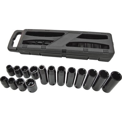 This Wel-Bilt 16-Pc. 1/2in.-Drive Metric Deep & Standard Impact Socket Set is crafted from chrome vanadium steel with large laser-etched sizes for easy identification. 6-pt. sockets are designed to easily remove wheel lug nuts. Set includes 8 standard and 8 deep sockets, each in 8mm to 19mm sizes. Drive (in.): 1/2, Pieces (qty.): 16, Point Size (qty.): 6, Metric Socket Size (mm): Standard & deep, each: 8, 10, 11, 12, 13, 14, 17 & 19, Material Type: Chrome vanadium steel, Storage Type: Blow-molded caseyou looking for low priced Wel-Bilt Deep & Standard Impact Socket Sets - 16-Pc., 1/2in.-Drive, Metric, 6-Pt.?